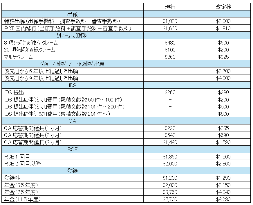 2025年1月19日より、米国特許商標庁(USPTO)の手数料が値上げされます。今回の料金改定の基本方針は、全体として7.5%の引き上げを基準としていますが、大幅に値上げされた項目、また新設された項目もあります。 主な改定項目は下記の通りです。