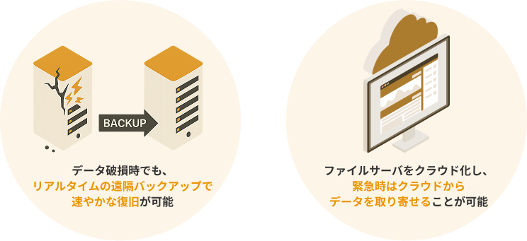 また、ファイルサーバーはクラウド化されており、緊急時にはクラウドから安全かつ迅速にデータを取り寄せることが可能です。